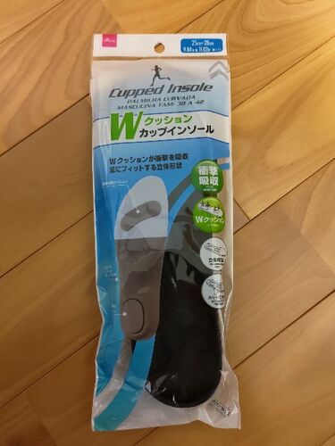 今回は、仕事で履いている安全靴のインソールで安くて良いモノがあったので紹介します。 パッケージ 裏面 ダイソー商品 インソール表 裏面 厚さ ダイソーで税込み¥110で売っている商品です。 私は、仕事で毎日15000歩程歩いています。 インソールを入れると…