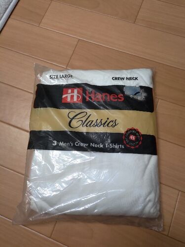 今回はTシャツです。 No.453 Hanes classic パックT それでは、なるべく詳しくディテールを見ていきましょう。 正面 背面 正面アップ 背面アップ 米国製 100%cotton 襟タグ デッドストック袋入りなので、少し汚れがあります。 3枚のパックT90年代の下着で…